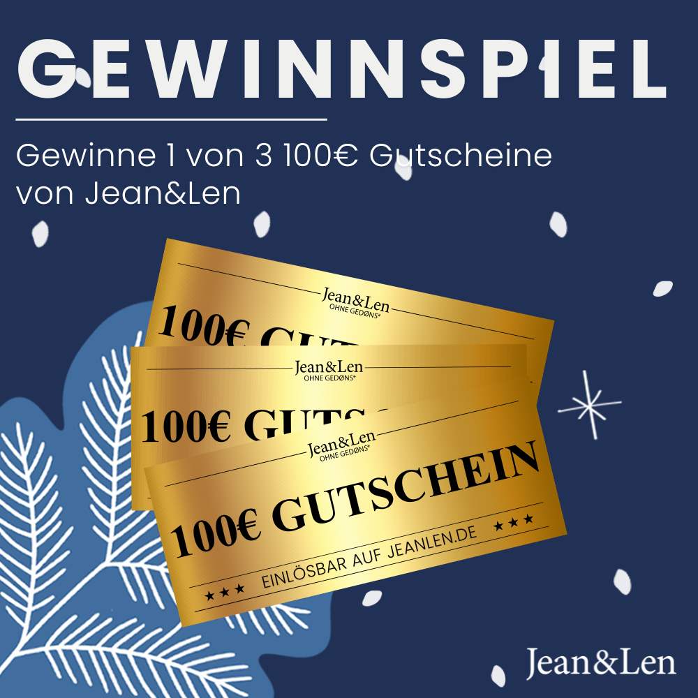Wir verlosen 3x 100 € Gutscheine für unseren Jean&Len Online-Shop – und Du darfst damit machen, was Du willst: Geschenke shoppen. Deine Vorräte für 2026 auffüllen. Oder einfach eine Mischung aus beidem. Stell Dir doch nur vor: Du sitzt eingekuschelt auf der Couch, Weihnachtsplaylist im Hintergrund, Tee dampft in der Hand und shoppst entspannt durch duftende Shampoos, streichelzarte Pflege und stylische Duftkerzen.